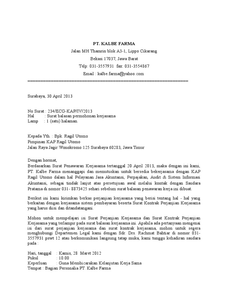 Surat Balasan Penawaran Kerjasama Perusahaan Pdf